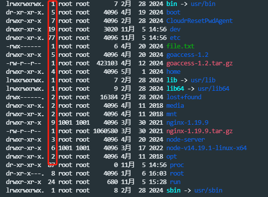 - 第二行的数量 代表你有多少文件 和目录里面有多少文件